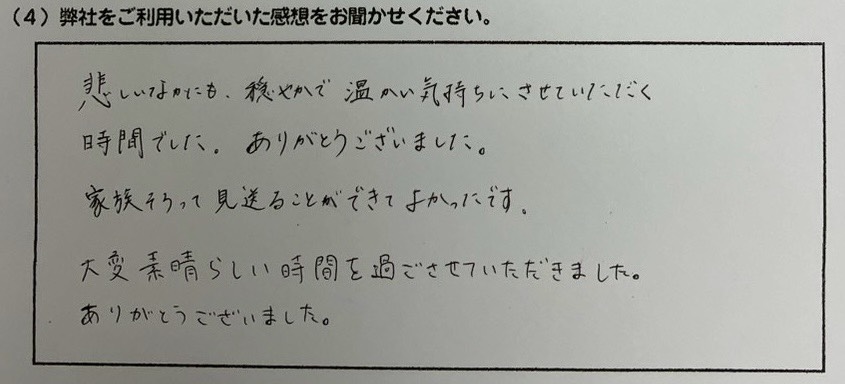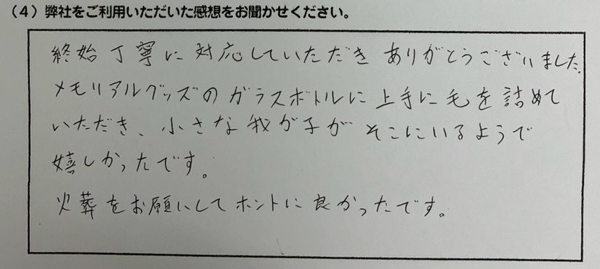 火葬をお願いしてホントに良かったです。